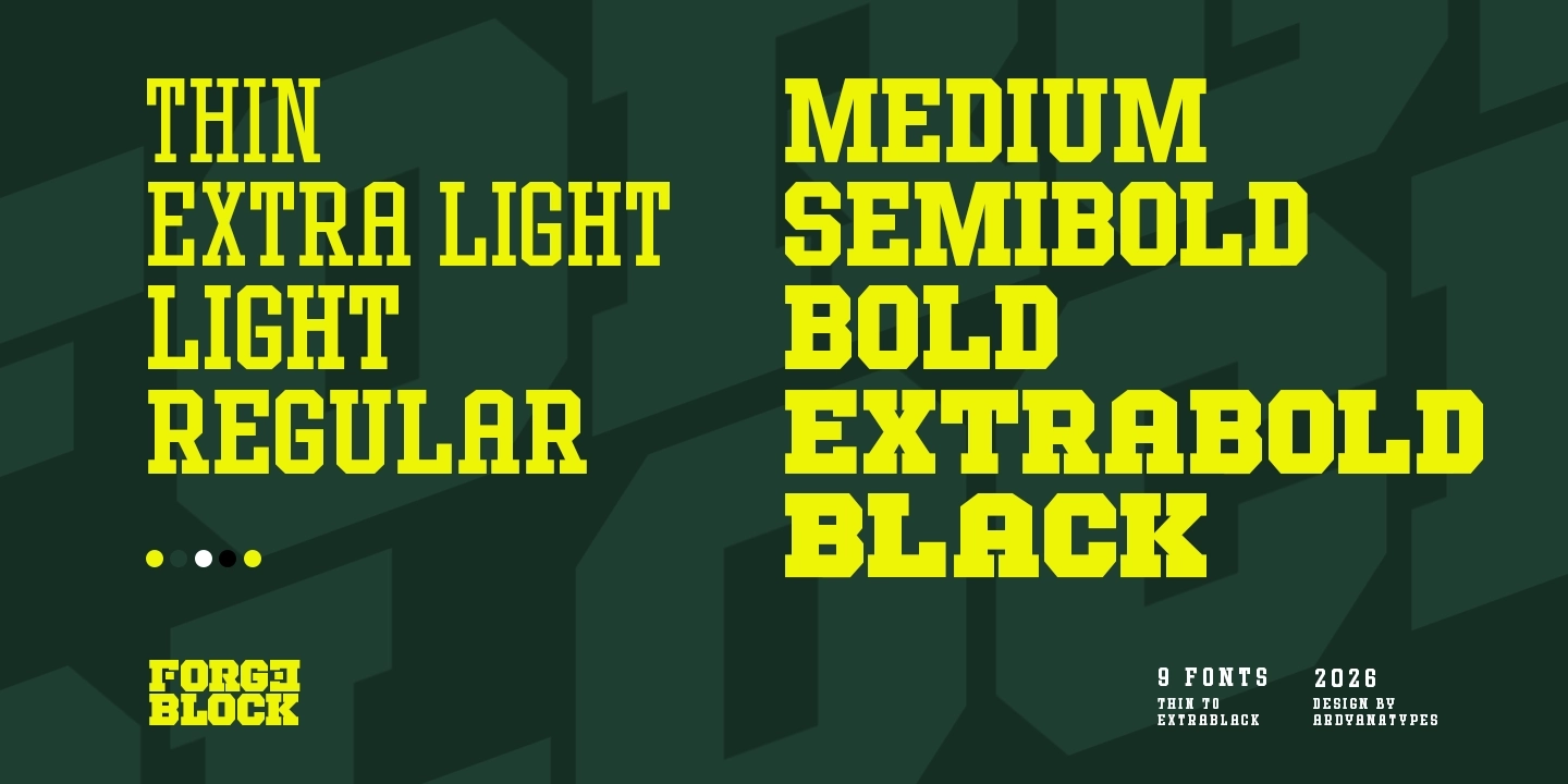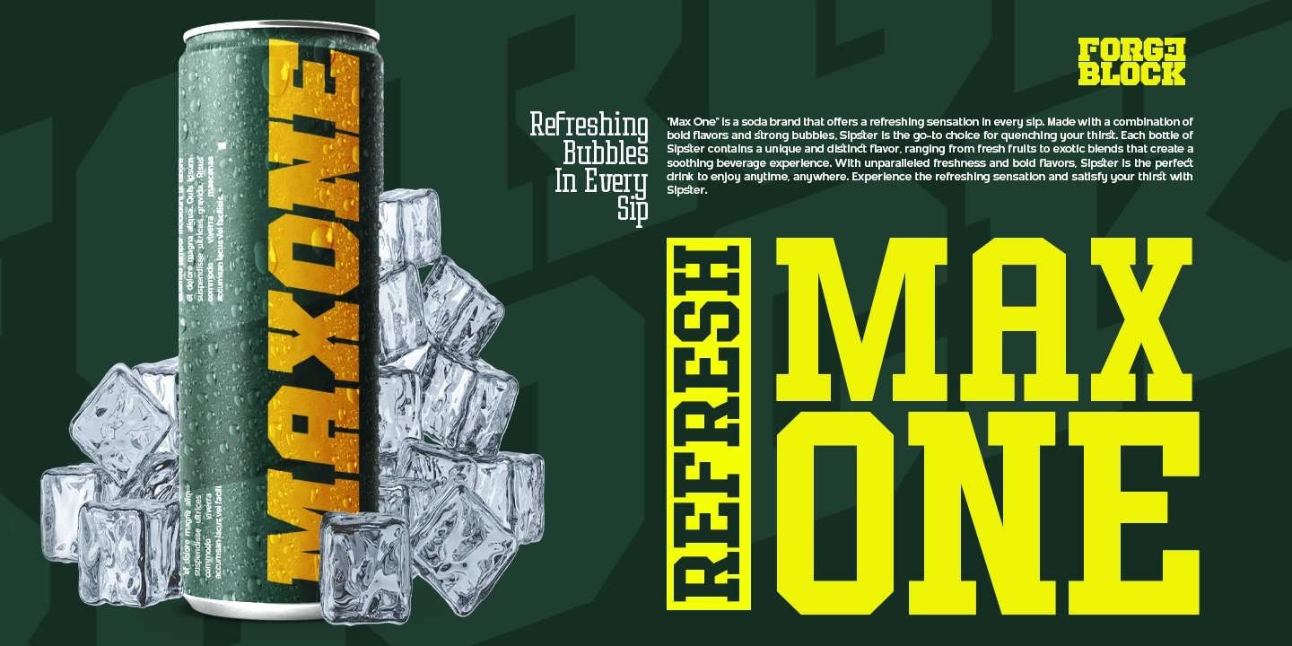 Built for designers who need typography that speaks loudly, Forge Block is perfect for headlines, posters, branding, sports graphics, esports, technology projects, product packaging, and digital promotions.