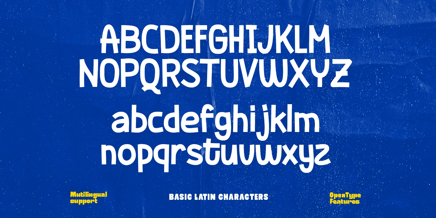 Each letter is crafted with unique curves and slightly irregular shapes, giving the font a lively and friendly character. The playful structure makes it perfect for designs that need warmth, fun, and a touch of creativity.
